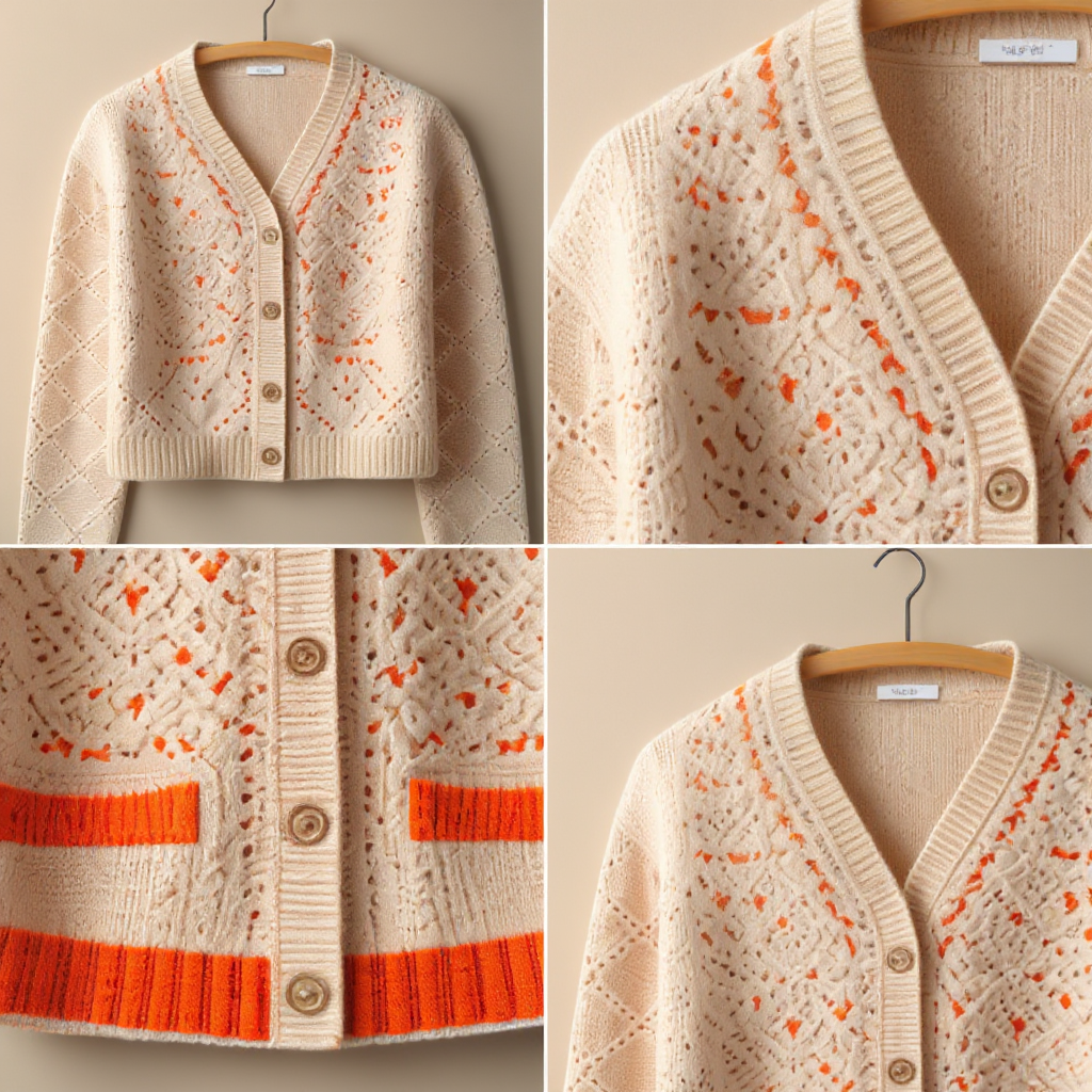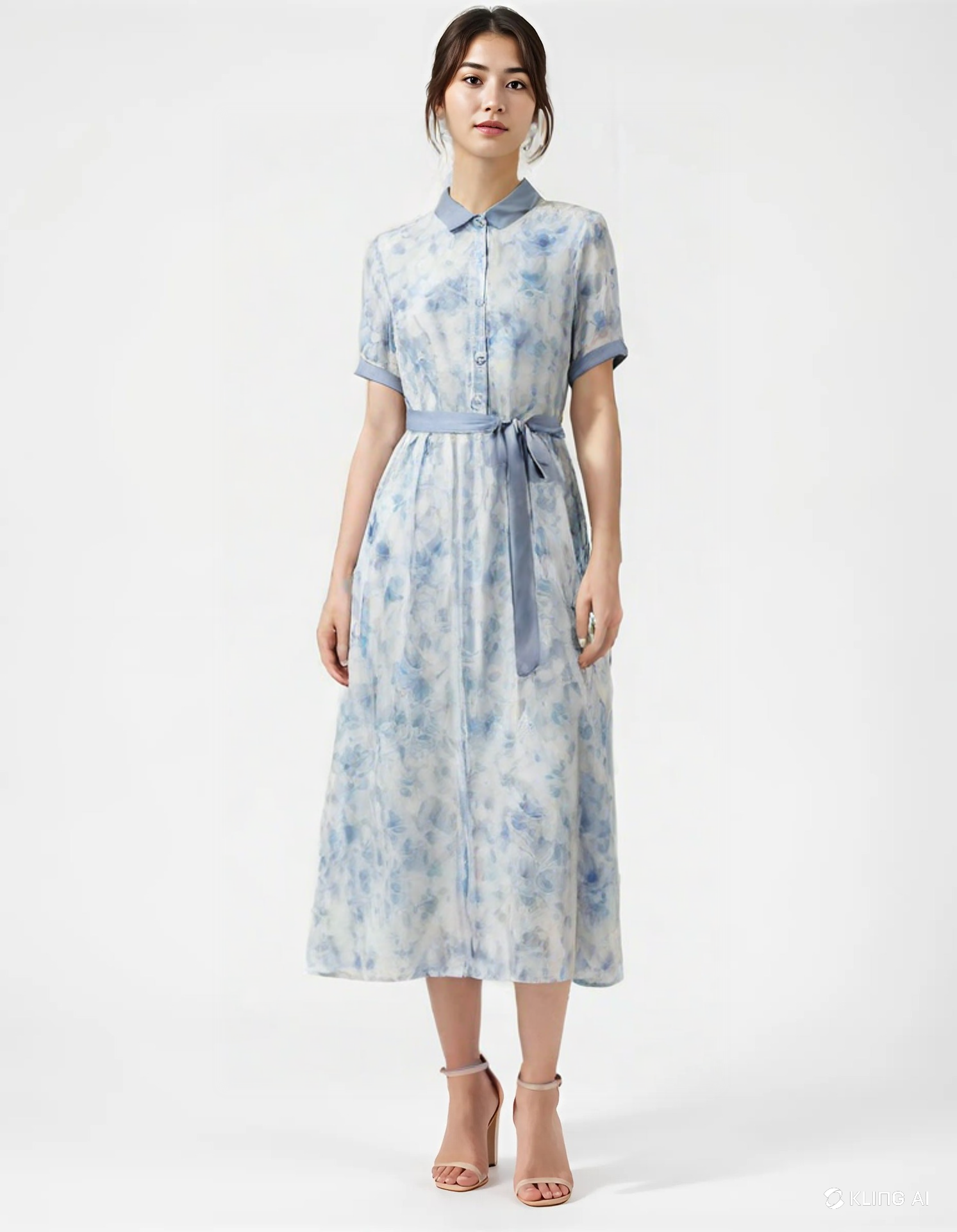 一連の画像は、AIアンバサダーが着用モデルや商品説明をしているシーン,